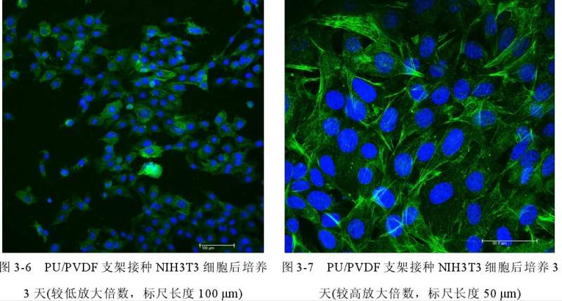 看文献时候看到如下的一幅图,是NIH3T3 细胞依次用微丝绿色荧光探针(Actin-Tracker Green) 和 DAPI染色处理后培养了3天得到的,我想问蓝色和绿色分别代表了什么,不是绿色的探针吗,为什么有蓝色的?(第一天基本上都是蓝色的) cell.jpg |