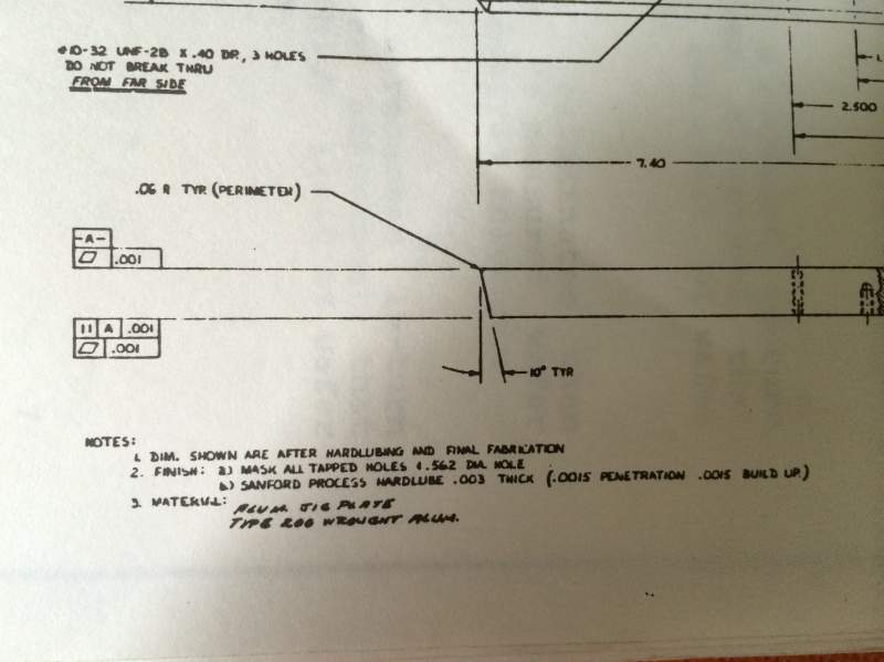第二张第一个尺寸表示孔直径4.562与面A的垂直度为0.0005;第二、四个尺寸表示倒角的长度和角度;第三个尺寸看不清。剩下的尺寸如图一