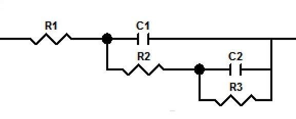 材料是活性炭和二氧化锰的复合材料,有一个双电层一个赝电容,这个电路图里面的R和C怎么分析,求指教