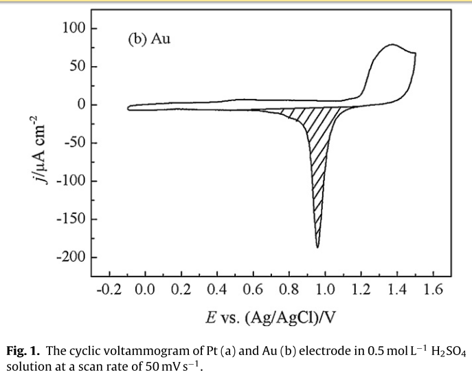 求解釋Au在0.5 M的H2SO4中,CV圖氧化還原波峰個別代表甚麼?