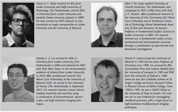 Electrochemistry of Nanoparticles 共28页 引文357篇 Steven E. F. Kleijn, Stanley C. S. Lai, Marc T. M. Koper,* and Patrick R. Unwin* Leiden Institute of Chemistry, Leiden University PO Box 9502, 2300 RA, Leiden (The Netherlands) E-mail: m.koper@chem.leidenuniv.nl Dr. S. C. S. Lai, Prof. Dr. P. R. Unwin Department of Chemistry, University of Warwick Gibbet Hill Road, Coventry CV4 7AL (UK) E-mail: p.r.unwin@warwick.ac.uk Dr. S. C. S. Lai Current address: MESA+ Institute for Nanotechnology, University of Twente, PO Box 217, 7500 AE, Enschede (The Netherlands) M etal nanoparticles (NPs) find widespread application as a result of their unique physical and chemical properties. NPs have generated considerable interest in catalysis and electrocatalysis, where they provide a high surface area to mass ratio and can be tailored to promote particular reaction pathways. The activity of NPs can be analyzed especially well using electrochemistry, which probes inter- facial chemistry directly. In this Review, we discuss key issues related to the electrochemistry of NPs. We highlight model studies that demon- strate exceptional control over the NP shape and size, or mass-trans- port conditions, which can provide key insights into the behavior of ensembles of NPs. Particular focus is on the challenge of ultimately measuring reactions at individual NPs, and relating the response to their structure, which is leading to imaginative experiments that have an impact on electrochemistry in general as well as broader surface and colloid science. |