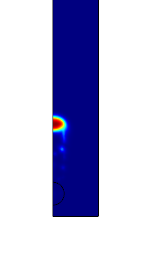 本人在模拟液滴萃取传质过程,如下图所示。半圆形区域(液滴)内为纯物质萃取剂,周围为含有A一定浓度的水溶液,现在液滴在水溶液中上升,请问如何计算出一定时间后液滴内A的含量,即计算液滴内A的平均浓度,液滴的浓度随时间与位置变化,应该怎么求?