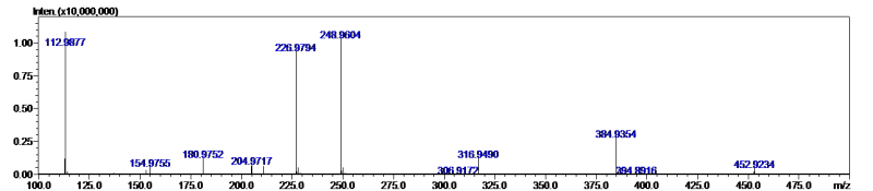 基本同意楼上的意见,但请注意M+H的m/z为226.9794,而且同位素的丰度很低,可以确定该化合物平均分子量为226而不是225