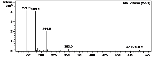 289是M+H,311是M+Na,271是M+1-H2O,分子量288
