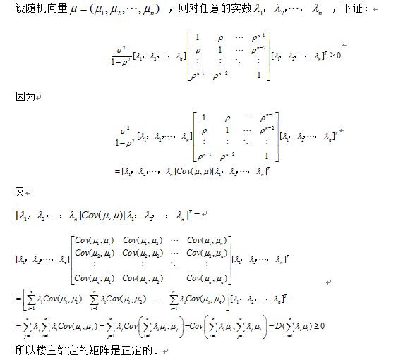 从该矩阵的定义证明,可以简单些 。即证对任意的随机变量X,其协方差矩阵Cov(X,X)是正定的。