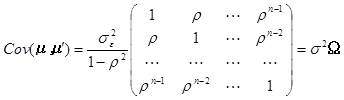 假设矩阵是n阶的, 那么由归纳法,可以看出det(A)= (1-pho^2)^ {n-1}.