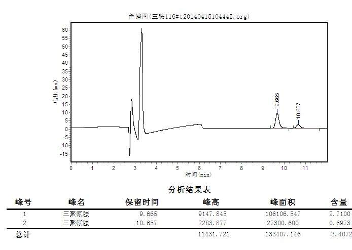 用岛津LC-10AD,做三聚氰胺迁移量测试时,用外标法进标样在10.0分左右出一个峰,可进测试样时,分别在10.0和11.0左右各出一个峰,求助有什么方法能解决这一现象 QQ图片样品峰.jpg QQ图片标样峰.jpg |
