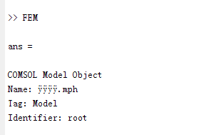 在comsol中保存了一个文件要在matlab中继续运算,但是,在comsol with matlab中运行时名称(FEM)显示不出来