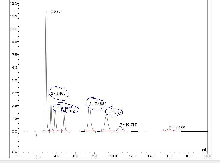 请问哪位做过离子色谱分析的,是否知道Ba、Ca、K、Li、Mg、Na、NH4、Sr的出峰顺序,附件是我的混标标样和样品峰,哪位可以判定峰的归属。