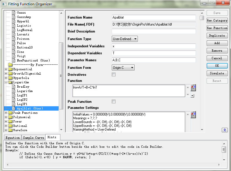 请问有人会用origin拟合数据用自定义的公式么?急急!