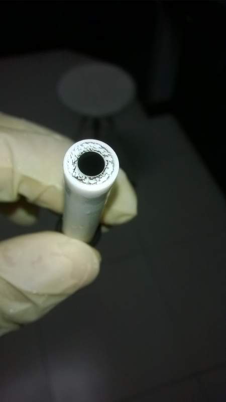 打磨完玻碳电极以后我在超纯水里超声,才不到一分钟我的电极就成这样了,貌似是把上面的碳给超声下来了?