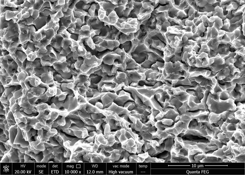 有些像延性断裂,和我在一本书上看到的ZrC高温晶间断裂照片很像