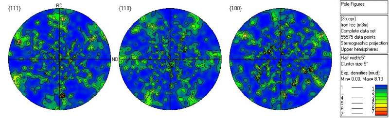 ebsd实验数据处理时,可用Mambo软件得到极图(包括散点图、等高线图、云图) 我现在做织构模拟 计算得到的欧拉角文件用matlab画出散点图 文献里都是把模拟的欧拉角数据直接画成云图然后和实验所测云图对比,非常漂亮 求大神帮忙啊,怎么通过原始欧拉角文件画出云图形式的极图?? 3b-PFsheet3.jpg 3b-PFsheet.jpg 3006_1.jpg |