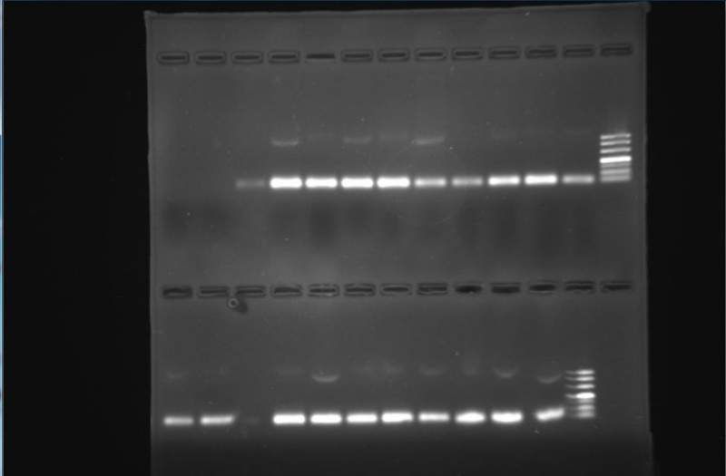 PCR扩增后出现的条带与预计的大小不一致(作者:凌波丽) 2013年9月24日 PCR扩增后出现的条带与预计的大小不一致,或大或小,或者同时出现特异性扩增带与非特异性扩增带,其原因与对策如下: I.引物与靶序列不完全互补、 或引物聚合形成二聚体、或者GC比邻远离50%。对策:重新设计引物。 II.Mg2+ 离子浓度过高、退火温度过低,及PCR循环次数 过多有关。 III.靶序列或扩增产物的交叉污染:这种污染有两种原因: 1.整个基因组或大片段的交叉污染,导致非特异性带出现。 这种非特异性带出现可用以下方法解决: (1)在加样枪的接头和吸杆之间加上脱脂消毒棉花,防止将靶序列吸入加样枪内或溅出离心管外。 (2)除了酶及不能耐高温的物质外,所有试剂或器材均应高压消毒。 (3)所用离心管及样进枪头等均应一次性使用。必要时,在加标本前,反应管和试剂用紫外线照射,以破坏存在的核酸。 (4)重新提取模板DNA。 2.空气中的小片段核酸污染,这些小片段比靶序列短,但有一定的同源性。有时候可能会互相拼接,与引物互补后,可扩增出PCR产物,而导致非特异性带出现的产生。虽然这样的可能性比较小。 对策:实验前对实验室充分通风,试验时尽量加上PCR试剂暴露于空气中的时间,还可用巢式PCR方法来减轻或消除空气中的小片段核酸造成的污染,最基本的解决办法:重新提取模板DNA。 IV.考虑使用热启动模式。可以购买商用的PCR热启动酶,也可以用石蜡隔离模式。 V.调整变性和退火温度时间。 VI.更换所有缓冲溶液,使用全部新配的缓冲溶液。这点可能太基本了,很不被重视。 VII.适当调高复性温度。没有重新设计引物,不要大范围地变动反应体系的复性温度,要在引物的Tm少5-10度的范围内变动。如果出现非特异性扩增,则把在引物的Tm少5-10度的范围内把复性温度提高1-3度;如果出现任何扩增带,则把在引物的Tm少5-10度的范围内把复性温度降低1-3度。 VIII.Taq酶的专一性扩增不够。往往一些来源的DNA聚合酶易出现非特异条带而另一来源的酶 则不出现,酶量过多有时也会出现非特异性扩增。其对策:改用专一性更强的DNA聚合酶,或者使用两种不同的DNA聚合酶,减低酶量或调换另一来源的专一性高的酶。更换DNA聚合酶时,酶量不要太大,以免出现特异性扩增。 酶制剂中的甘油可能也是干扰因素。可以加入反应体系之前用超滤去除酶制剂中的甘油。 IX.使用梯度降低PCR。在以基因组DNA为模板进行PCR扩增时,非特异性扩增较多,这时,最初的退火温度选用比Tm高5-10度。然后每隔1个循环,退火温度降低1-2度,直至到达正常的Tm附近的退火温度。 X.适当减低的dNTP的浓度,可以分梯度进行。 一般的调整顺序(不是绝对的):若PCR反应后无任何产物,可先调整Mg2+ 浓度,Mg2+ 浓度不高于10.0mmol/L,不低于1.0mmol/L,调整时从低往高分梯度加,每次升高0.05mmol/L.最常使用Mg2+ 浓度为1.5mmol/L。同时全部重新配所有的缓冲溶液。 然后调整引物浓度,在调整引物与模板的结合温度,调整变性和退火温度时间。接着或者与引物调整同时,把酶换成其他类型的DNA聚合酶(高保真酶或者热启动酶)。再往后,检测和重新提取DNA模板(包括用质谱或者电泳检测DNA是否变短,清除酚和SDS,检测模板浓度,必要时要对DNA模板测序)。再往后和使用梯度降低dNTP。最后这些都做了仍未奏效,那么就要重新设计引物了。一般是最先调整Mg2+ 浓度,最后重新设计引物,其他顺序可变。Mg2+ 浓度与dNTP的浓度一般同方向偶联调节。 XI.适当减少退货时间和提高退火温度。 XII.在反应体系中加入:1.5mol/L的甜菜碱或者5%的DMSO可以提高PCR扩增效率。 过去,我也回答过PCR非特异性扩增的问题,但是这次回答我在2013年8月14日重新编辑核对的。 XIII.使用巢式PCR。 调整镁离子浓度时,可以与dNTP正相关的梯度调整,两者同方向分梯度调节,一般不要反方向调节;但是可以单独镁离子浓度,而dNTP浓度不动;有时候dNTP浓度调整不大时也可以不动镁离子浓度,因为镁离子浓度太高了,可能会增加非特异性扩增,或者有时候就是可以不动dNTP浓度而只调节镁离子浓度也能够增加PCR的专一性。 我参考了yujitianqing的帖子,http://muchong.com/bbs/viewthread.php?tid=6198669 过去我没有注意到,而后我去查阅了文献,有的文献与yujitianqing的帖子的内容基本上一致,也有些文献与yujitianqing的帖子的内容不一致。 具体是那种情况,我们可以在具体从各种可能性中选择,或者在在根据具体情况添加因素,目前我只能想到这些。 |