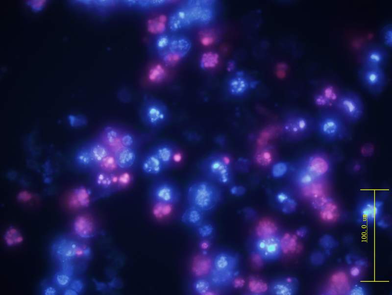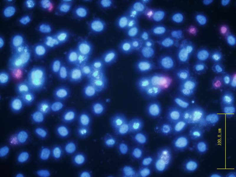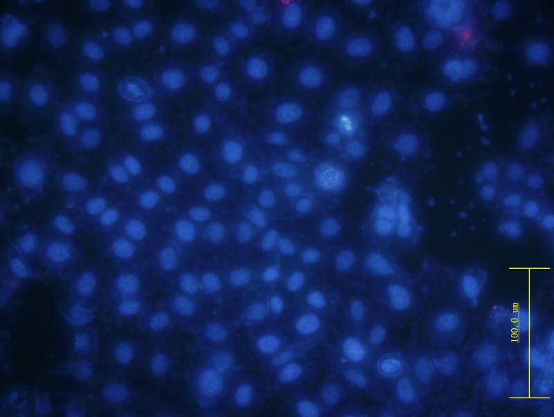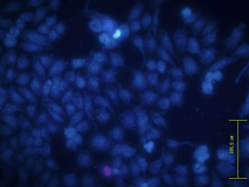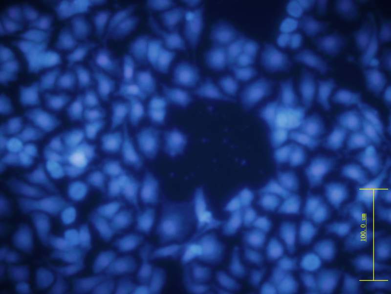 整个细胞淡蓝色?是核碎裂、核溶解还是hoechest 淬灭(细胞同时Hoechst 和PI染色)