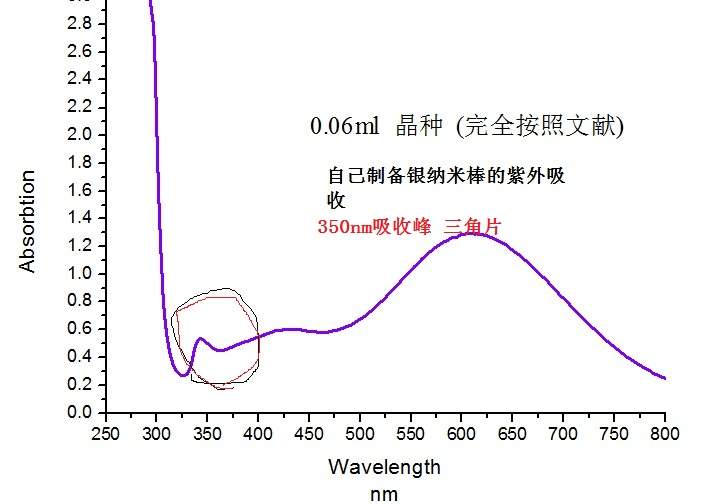完全按照Murphy文献制备银纳米棒,紫外有3个吸收峰,TEM很少有棒已有4人参与