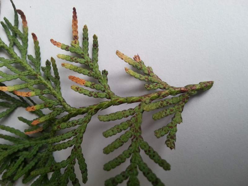柏树叶子背面有褐色斑块,顶端枯死,求助啊!