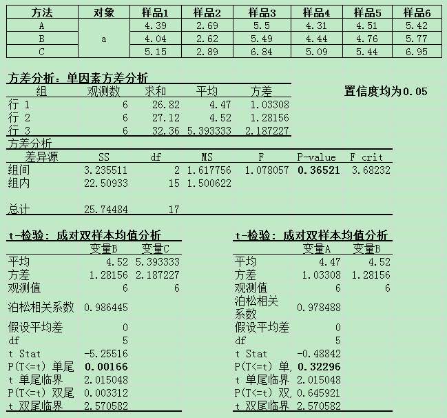 求助大神:单因素方差分析和配对样品t值检验的区别和适用范围!数据分析出矛盾了!
