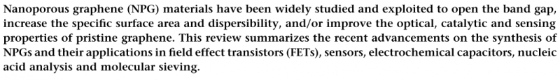 Materials Today最新综述:纳米多孔石墨烯材料——清华大学 石高全教授出品