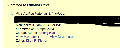 ACS Applied Materials & Interfaces 投稿近一个月无音信
