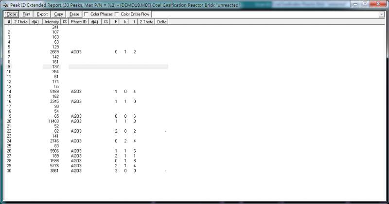 我用jade分析完物相后,点Peak ID extended,为什么I%这一列是空白的??