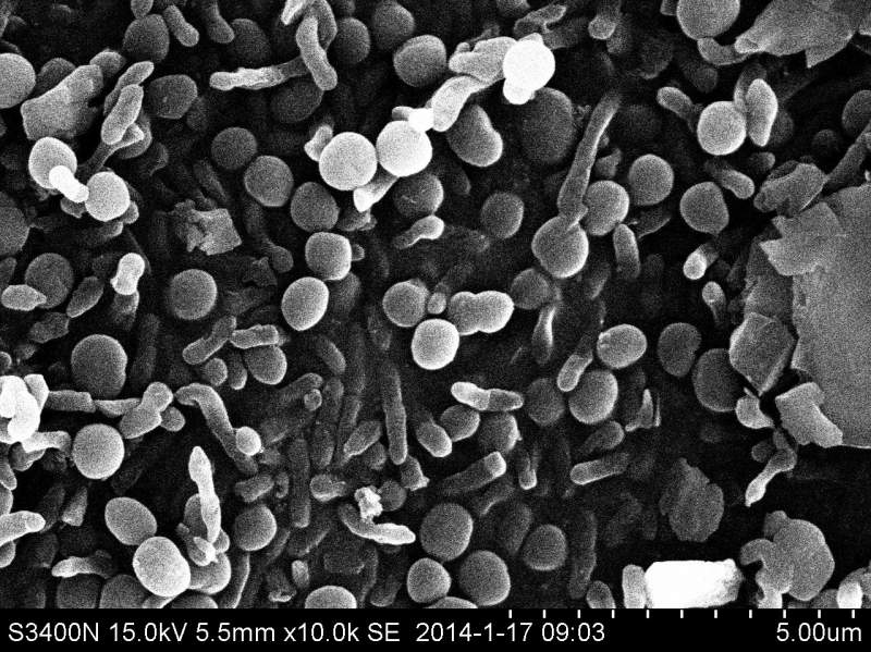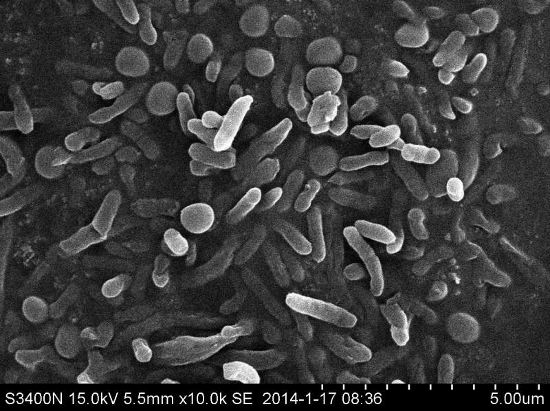 本人做了下一已知杆菌,经污染物处理后的扫描电镜,结果如图,按理说杆状的是我的目标菌,可圆圆的球状的是什么呢?一开始以为是引入了杂菌,对本批次,残留的菌液划线培养,没发现有杂菌。难道是杆菌的横切面?望知道的大侠们不吝赐教! wlh-2014-1-17-3-3.jpg wlh-2014-1-17-1-2.jpg |