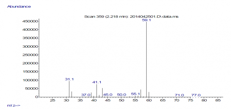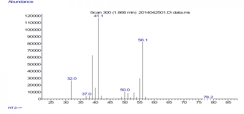 做了氯代叔丁烷和氯丁烷的反应,发现出了一些杂质,两种反应的杂质基本相当,都是主峰前面有两个杂质 前两个图是氯代叔丁烷的2个杂质,后两个图是氯丁烷的2个杂质,麻烦MS解析高手给予帮助,非常感谢。 001.png 002.png 004.png 005.png |