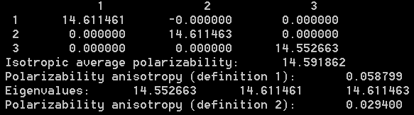 使用Multiwfn基于完全态求和(SOS)方法计算极化率和超极化率 1 前言 完全态求和(SOS)是计算极化率和超极化率的常见方法。Multiwfn从3.3.1版开始支持通过SOS计算静态/含频的极化率α、第一超极化率β、第二超极化率γ乃至第三超极化率δ。其中需要用到的各个态的能量及偶极矩,以及各个态之间的跃迁偶极矩,都可以利用Multiwfn基于Gaussian的CIS、TDHF、TDDFT计算结果来产生。本文就介绍具体怎么实现。 虽然Gaussian直接可以用TD(SOS)关键词基于TDHF、TDDFT的结果做SOS计算,但是只能给出极化率,显然太局限了,而且对常用的CIS也不支持SOS计算。 本文使用的Multiwfn为3.3.1版,可以在其主页http://Multiwfn.codeplex.com上免费下载。不要用老版本,老版本无此功能。Multiwfn是最强大的波函数分析程序,此文介绍的只不过是它的一个附属功能而已。如果对Multiwfn不熟悉,建议阅读《Multiwfn波函数分析程序的意义、功能与用途》(http://hi.baidu.com/sobereva/item/b35581418db96cea1f19bc09)和《Multiwfn入门tips》(http://hi.baidu.com/sobereva/item/896ee3a19f6d7d3c020a4d76)。Multiwfn的未来版本有可能在操作过程上与本文有异,届时请仔细阅读屏幕上的提示灵活变通并参阅手册相关章节的说明。 另外,在《使用Multiwfn分析Gaussian09的极化率、第一超极化率的输出》(http://hi.baidu.com/sobereva/item/512a543f7e4fc7b9623afff4)一文中,介绍了怎么使用Multiwfn分析Gaussian的polar关键词产生的极化率和第一超极化率的输出,其中也介绍了一些(超)极化率的基本概念,有兴趣可以看看。polar关键词所用的导数方法是另一种最重要的计算(超)极化率的方法。 2 SOS方法 SOS的具体原理这里不讨论,主要就是介绍一下实际的计算公式。α、β、γ、δ的SOS计算公式在J. Chem. Phys., 99, 3738 (1993)里都能找到。注意很多很多文献、书籍里给出的SOS公式都是错的。计算极化率和第一超极化率的公式如下 A,B,C...这样的标号用来表示方向{X,Y,Z}。ω是外场能量,为0时对应的是静态的(超)极化率。加和是对所有激发态加和,Δ代表激发态相对于基态的激发能。P表示对方括号里的项进行各种可能的置换。比如对于β,P的方括号里有三项,因此有3!=6种排列,要对这6种情况的结果加和。μ_A_ij代表i、j两个态的跃迁偶极矩的A方向的分量。i=j时对应的就是第i个态的偶极矩,故μ00就是基态的偶极矩。δij是kronecker符号,i=j时为1,否则为0。 类似地,第二、第三超极化率的公式为 可见,做SOS计算并不困难,公式都是现成的,只要提供各个激发态的激发能、偶极矩,以及各激发态之间的跃迁偶极矩就行了。通过ZINDO、CIS、TDHF、TDDFT等电子激发方法都能产生这些量。CIS(D)也可以,用于SOS时跃迁偶极矩依然是用CIS的,但激发能是通过二阶微扰修正的,以此更好地考虑电子相关效应。 整个SOS计算过程分为两部分(1)电子激发计算(2)依据SOS公式进行循环累加。对于(2)部分,α和β计算本身几乎不花时间,γ稍微耗点时间。对于δ,当考虑的态数很多时,从上式可见需要对激发态做四重循环累加,而且包含3^5=243个分量(尽管有些分量是相同的可以避免重复计算),故计算δ还是颇费时的。对于一般我们感兴趣的α、β和γ,SOS的整个计算花费主要都是用(1)上,特别是对于大体系、高质量基组的情况。注意(2)部分耗时本身和基函数数目无直接关系,只取决于考虑的态数,但(1)的耗时与基函数数目直接相关。 ZINDO是半经验方法,计算很快,SOS/ZINDO组合很廉价,经常用在计算有机大共轭体系NLO性质上。而原理上更精准的CIS/TDHF/TDDFT显然就耗时得多的多了。SOS原则上要对所有态进行求和,实际研究中虽然用不着考虑所有态,但一般也得在电子激发过程中计算40~120个态,远高于一般研究电子激发问题要求的态数。求解的态数越多,CIS/TDHF/TDDFT就明显越耗时。本来这类从头算方式的电子激发计算用在很大体系就比较困难,再加上为了做SOS又要计算那么多态,而且较准确计算β,特别是γ,又需要弥散函数丰富的较大基组,SOS结合CIS/TDHF/TDDFT能应用的尺度是很有限的。比起SOS,如果所有的导数都能解析地计算的话,用导数方法计算(超)极化率是更好的选择。不过支持高阶解析导数从编程角度来讲很困难,Gaussian能做到三阶解析导数(对应β)的方法只有HF、DFT和半经验,它们不支持四阶解析导数来由此产生γ。虽然基于三阶解析导数自行做一次有限差分也能得到静态的γ,但是没法得到含频的γ,这就不得不用SOS了。另外,只要有了SOS计算所需的信息,每次SOS的计算很快,只不过是做简单的循环及加减乘除而已,因此可以便利地研究α、β和γ随频率的变化,这是SOS的一个鲜明的优点。 3 Multiwfn的SOS计算功能 Multiwfn的SOS功能对应于主功能200里的子功能8,能够计算极化率和第一、二、三超极化率,计算效率很高,被充分地并行化(机子是几个核建议就在settings.ini文件里把并行线程数nthreads设成几)。而且还能十分方便地计算α、β、γ随着考虑的态数发生的变化以检验SOS的收敛性,以及α、β、γ随着外场频率的变化而发生的变化。 Multiwfn做SOS时要读取的信息包括基态和激发态偶极矩、激发能,以及所有态间的跃迁偶极矩。这些信息可以从两种渠道读取 (1) 直接从Gaussian的ZINDO/CIS/TDHF/TDDFT输出文件中读取。不幸的是,TDHF/TDDFT任务的输出文件不包含激发态之间的跃迁偶极矩,而CIS和ZINDO虽然有alltransitiondensities关键词可以输出激发态之间的跃迁偶极矩,但是并没有办法一次性