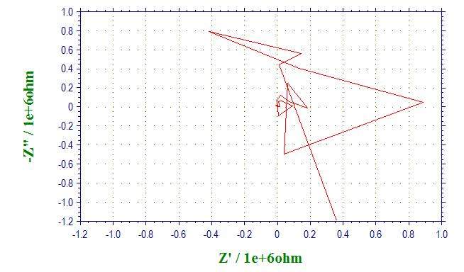 我用一个测电导率的小瓶测交流阻抗来计算电导率,得到的图都是这样的图,只有开头的一小段能看到一个电阻,后面的全是杂点,这种数据能用吗?