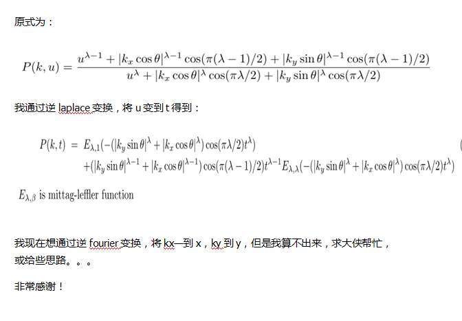 原式如图2所示,我已经算了好长时间,一直没有什么结果,我做的与分数阶微分确实有点关系,我通过mathematic做逆算不出来结果....