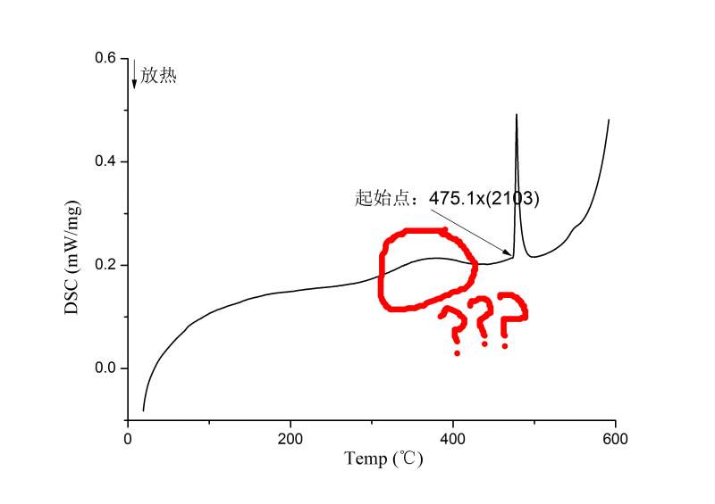 求助各位大神呐,这7000系铝合金的DSC曲线400度之前的很宽的一个凸起到底是不是峰呢?要想弄清楚应该怎么办啊