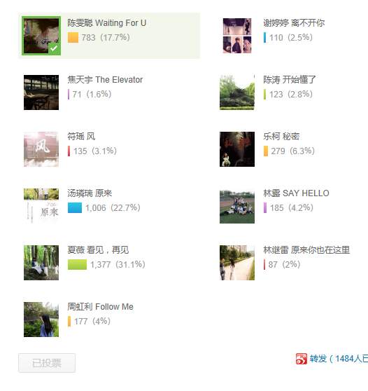 重点来啦~如果看完 后觉得不错的话给她投一票吧~ (投给陈 雯聪《waiting for u》哦)微微心动投票网 址: