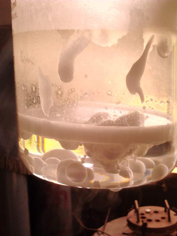 本人最近在做超级电容器电解质的实验。实验过程中发现电解质在低温情况下出现如图所示的状况,不清楚是怎么回事。麻烦广大虫友能否给个详细的解释。溶质为氯化钙,溶剂为水和甲酰胺