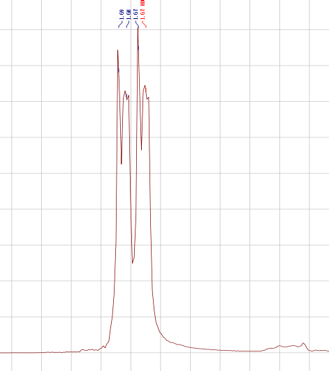 请问各位大神这个丙交酯的核磁波普是怎么回事,为什么在1.68左右会有四个裂分峰呢?已有2人参与