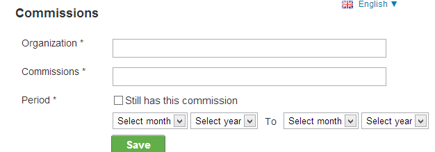 1. Commissions表示什么意思, 该项与Education, Work experience, Courses等并列. 具体的填写的内容有: Organization, Commissions和Period (见图).
