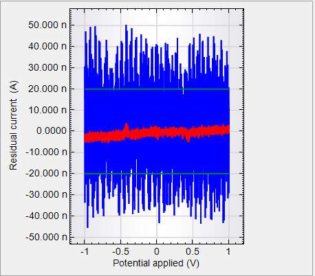 最近电脑重装了系统,就重新安装了Autolab,安装过程中要Test CV,但是我的测试结果有些不正常,如图,正常情况下应该是红色和蓝色的波动都应在两条绿色的界限之内,但是我的蓝色波动明显超出了范围,我试了几次都是这个样子,应该怎么办啊?还请高手指教。。 20140503150509.jpg |
