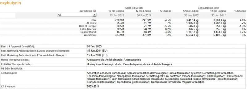 | 求oxybutynin hydrochloride的IMS数据,主要是欧美市场的销量情况,请帮助! |