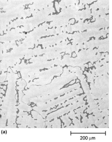 第一个是焊后的组织,我觉得是奥氏体+碳化物的共晶体。但是这种组织的含碳量很低,只有0.1%,含钼量较高,为8.5%,有没有可能是拓扑密堆相? 然后第二幅图是650℃回火4小时的组织,这个组织和第一个一样的么?是什么组织啊?跪求高手解答!!! DualView0007.jpg _MG_9702.JPG |