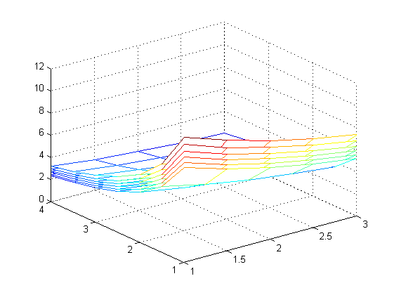 刚刚照着教程绘制出来一个三维图 想再尝试绘制一个,就出现错误 求大家帮忙 刚学,有错误请指正 syms x y z a=0.9 [x,y]=meshgrid(1:0.5:4) z=100/((2.8*a+1)*(x+1)*y+2.65*y+1.35) mesh(x,y,z); |