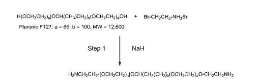 反应如图所示,采用无水氯仿为溶剂,氢化钠脱F127上的氢,然后与BrCH2CH2NH3Br反应,接氨基,分析核磁图谱,好像没有做出来,请问各位,这个实验方案有问题么,氢化钠用之前用石油醚清洗了2到3次,吸去上清液,且反应是在氮气保护下进行的 ~R$5NGR`A7Q5BWD(3%8G5%E.jpg |
