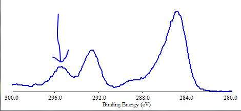 我的样品里面含K元素,没有C元素。所以想确定下xps测试有没有显示K元素。 C1s窄谱一共有三个明显的峰,分别为284.7ev、 292.5ev、 295.5ev。能不能确定结合能为295.5eV处的峰是不是K元素的? 捕获.JPG |