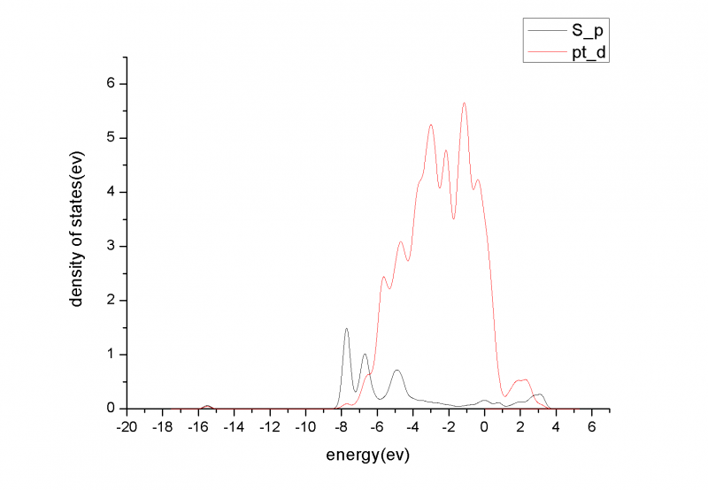 图中是吸附在Pt表面的H2S中的S的P轨道和Pt的d轨道,请问如何看出哪个是S的Px,Py, Pz对应的峰阿,谢谢