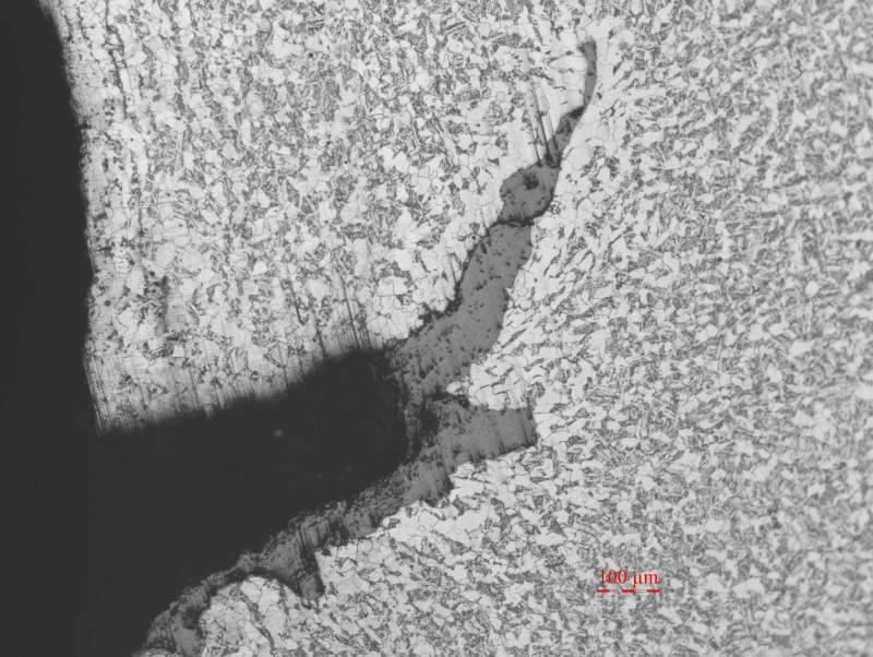 图片1裂纹两侧晶粒被拉长,是否说明是轧制划伤? 图片2裂纹两侧有脱碳现象,是否说明是铸坯裂纹,高温加热后脱碳的? (ˇˍˇ) 想请教几个问题,是否有脱碳(热处理之前)就说明一定是铸坯上的,晶粒变形就一定是划伤。 但是一些低碳钢应该脱碳也不明显啊。 1-.jpg 2.jpg |