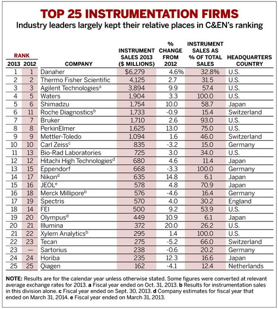 全球顶尖仪器公司2013排行榜新鲜出炉!