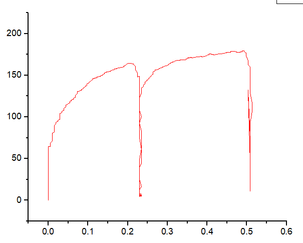 如题 我做了一些某车身上的B柱的拉伸试验 试样是按照国标取的标准件 用了引伸计测量的 得到的应力应变曲线如图 是不是这个材料过了屈服后 没有一个强化的过程啊 都找不到抗拉强度在哪里啊 还有我想算出屈服极限 就是0.2%的塑性应变对应的应力 在Origin里该怎么弄啊 求大神帮助! C@BAG3FF1ZOS1[09017GMUB.jpg |