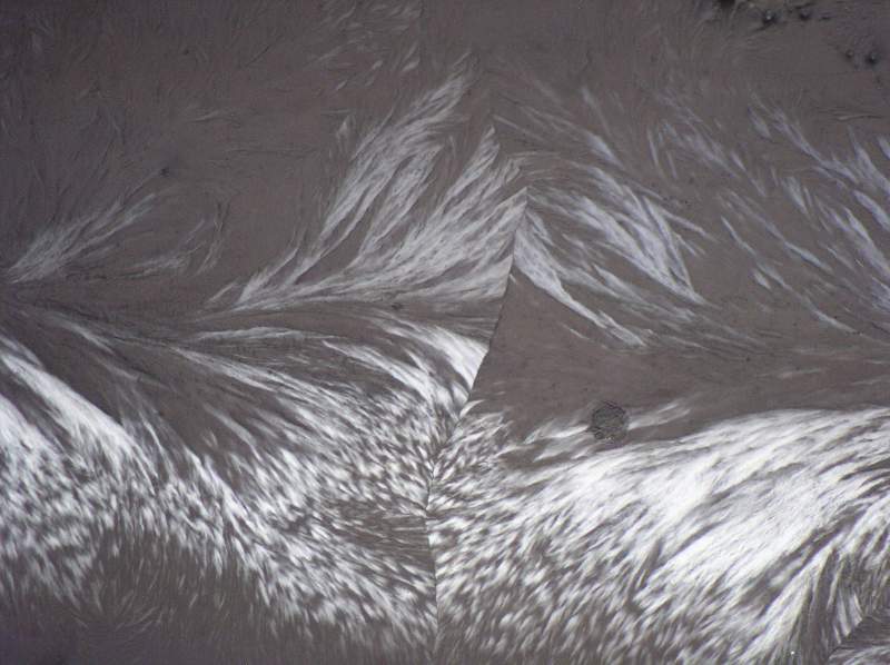 前两张树枝状晶, 后面一张球晶..PEO球晶很大,你照的是靠十字中心的部位..照的时候多注意调整市场..应该还会看到其他形态