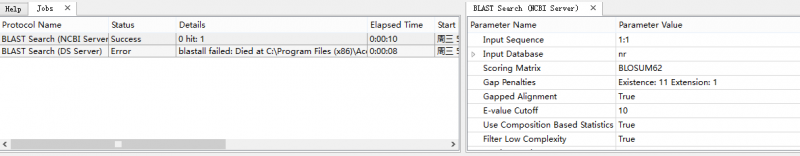 按说明书方法在BLAST search(DS serve)中总是error,图1。BLAST search(NCBI serve)中总是hit 0,图2。没办法,在NCBI中比对并下载序列5个,用file-open分别打开(图3),但不会将这5个序列整合在一起,该如何操作啊,新手求助,谢谢了! 1.png 2.png 3.png |