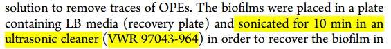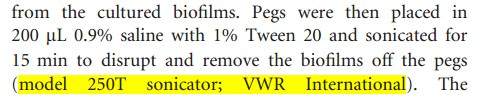 做细菌生物膜实验,需要将粘附在96孔板的生物膜上的细菌震荡下来, 文献里面的这个仪器是超声震荡仪还是超声清洗器,还是两者都可以用?都是一个实验方法,不同文献而已,用的仪器不一样。 频率是多少? 能不能给个仪器链接看看? 1.jpg 2.jpg |