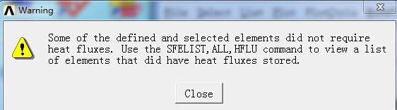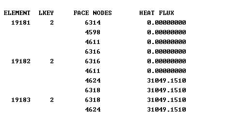 按照warning提示用SFELIST,ALL,HFLU查看到结果的一部分见第三张图,结点应该是施加上载荷的,但不知道其中的LKEY和FACE NODES是什么意思。