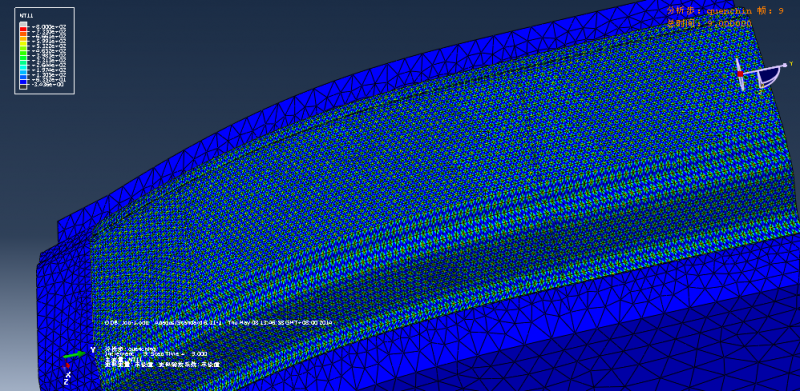 我用abaqus模拟毛坯在模具中冷却的温度场。毛坯初始温度800度,模具初始温度20度。设置了界面换热系数和水道的等效换热系数,结果就成这样了,求大神指点。。。图实在是看不下去啊![]() ![]() ![]() 温度场1.PNG 温度场放大.PNG |